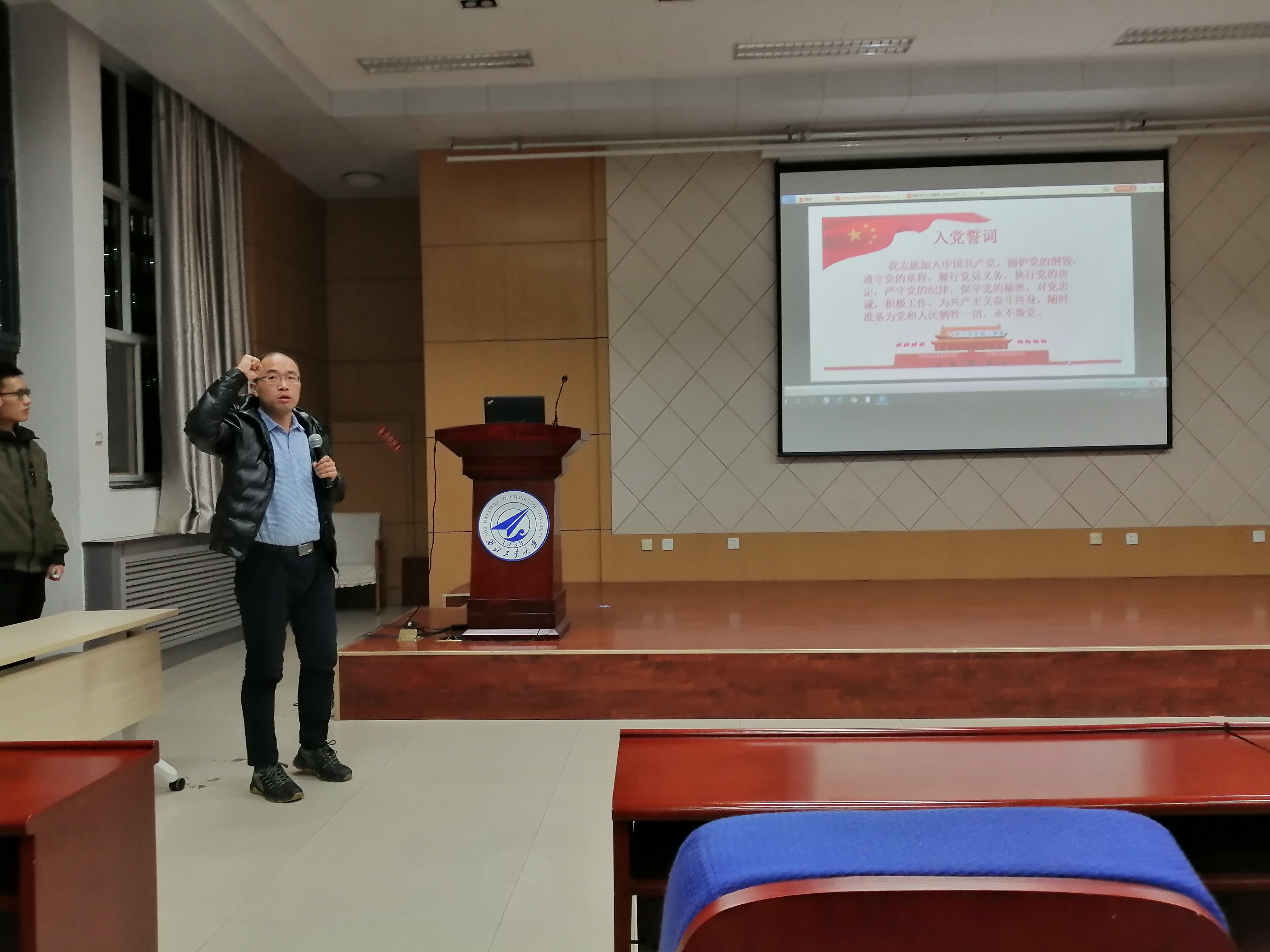 首先,新葡萄8883官网AMG本科生党支部书记张书成同志介绍本次党课的流程。然后,学院团委书记、2018级本科生辅导员李世洋老师带领学生预备党员进行了入党宣誓。最后,李栋院长结合自身经历为同学们上了一堂生动的有关个人与集体关系的党课。他指出,从上大学起,完成一段学业、一个科研任务就是自主解决问题的过程,解决问题的能力培养是提升自己科研素质的核心。同学们要学会找寻正确的方向,坚持学术追求,坚守学术道德。协调团队目标与个人目标的方向,锻炼自己,磨练意志,保持积极向上的状态面对科研与生活。