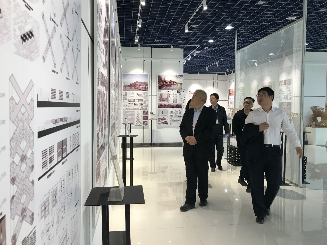 随后,李和章教授来到长安校区科技艺术展览馆建筑系部分,在高大力书记和杨卫丽老师的讲解下,先后查看了中国传统建筑教学模型与构件、本科生建筑模型作品、本科生参加国际国内高水平竞赛获奖作品、优秀本科毕业设计及优秀课程设计作业,对新葡萄官网建筑学学生的专业能力和学院坚持以建筑学专业特点和专业内涵为核心要求的本科培养工作给予肯定,对建筑学专业为学校人文与艺术氛围的